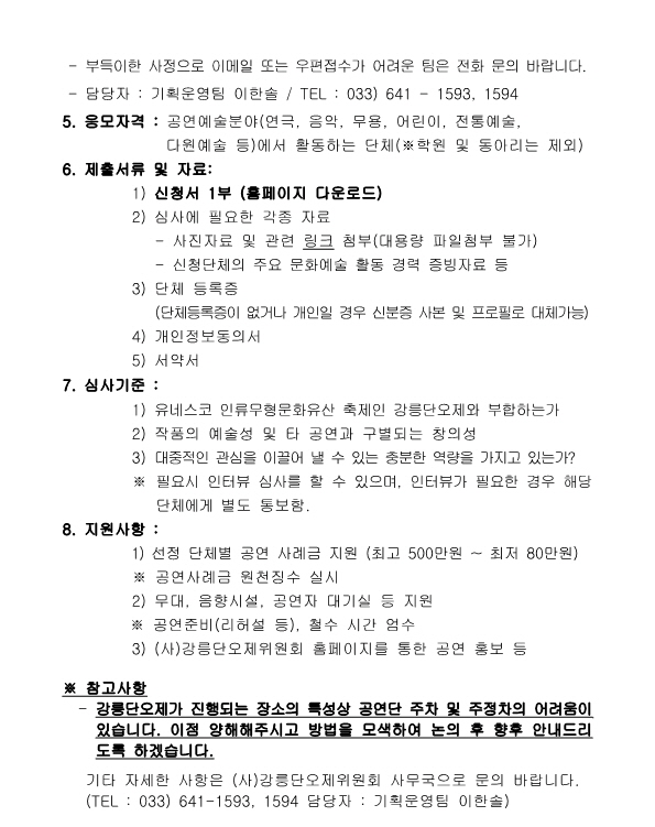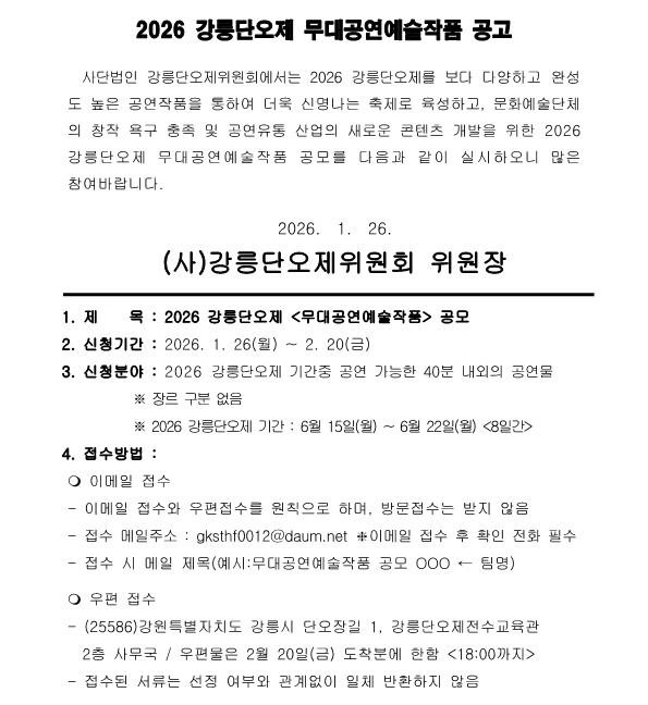 2026 강릉단오제 무대공연예술작품 공모 공고