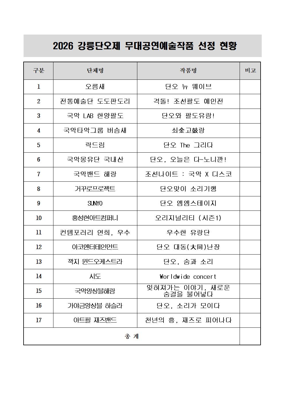 2026 강릉단오제 무대공연예술작품 선정 결과 공고