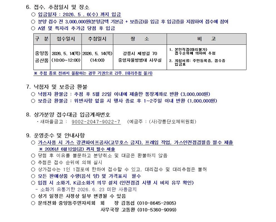 2026 강릉단오제 중앙동구역 분양 공고 (스낵)