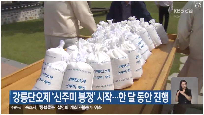 신주미 봉정은 단오제에 쓰일 술인 신주를 빚는 데 필요한 쌀을 십시일반 모으는 시민 참여 행사입니다.
