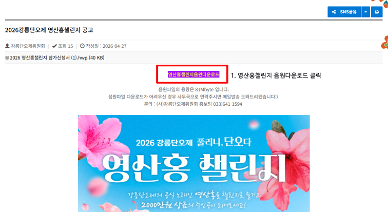 2026 영산홍챌린지 음원다운로드 방법