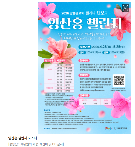 (강릉=연합뉴스) 유형재 기자 = 사단법인 강릉단오제위원회가 5월 25일까지 '2026 강릉단오제' 영산홍 챌린지를 개최한다.