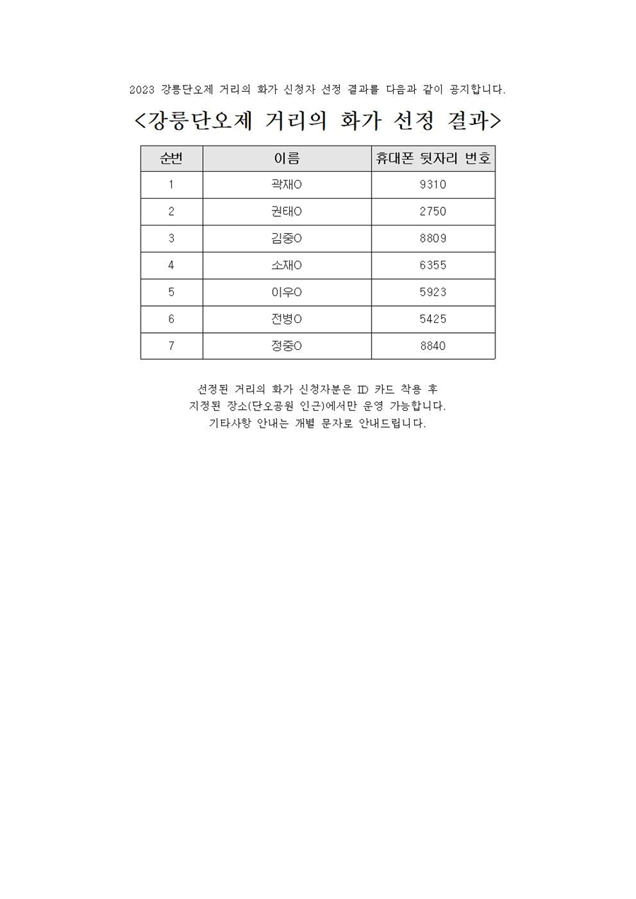 2023 강릉단오제 거리의 화가 선정 결과 공고