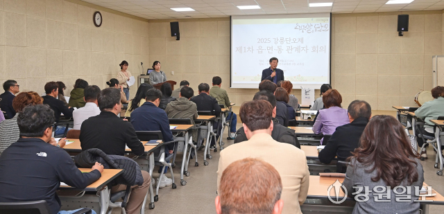 2025 강릉단오제 읍·면·동 관계자 회의가 9일 강릉단오제전수교육관 2층 교육실에서 김동찬 강릉단오제위원장을 비롯한 읍면동 관계자들이 참석한 가운데 열려 신주미 봉정 등 주요 행사를 안내하고 논의했다.