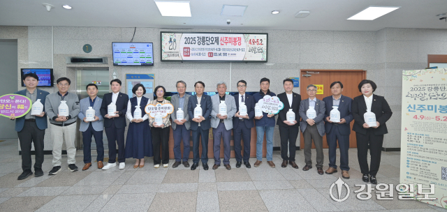강릉시의회 최익순 의장을 비롯한 의원들은 28일 강릉시의회 로비에서 십시일반 정성을 모아 2025 강릉단오제 신주미 봉정 릴레이에 참여하며, 유네스코 인류무형문화유산 선정 20주년을 맞은 강릉단오제의 성공을 기원했다.
