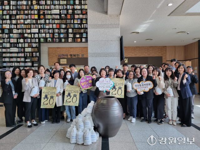 강릉시 복지민원국(국장 이채희)은 직원들과 함께 28일 시청 로비에서 유네스코 인류무형문화유산 선정 20주년을 맞이한 2025 강릉단오제 신주미 봉정 릴레이에 참여했다. 이채희 복지민원국장은 “단오의 전통을 계승하고 시민 모두가 하나되는 스무살, 단오의 성공적인 개최를 바란다.”라고 말했다.